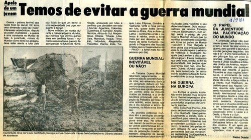 Naquela sexta-feira, na capa do suplemento, uma chamada: “Apelo Juvenil: Vamos evitar Guerra Mundial”. Era o meu artigo. Era o princípio de um caminho. Na semana seguinte, outro texto, agora sobre a explosão da Nova Música Popular Portuguesa que se adivinhava em grupos como os Trovante. Depois outro sobre rock português. E à terceira dose, um telefonema inesperado de Victor Silva Lopes, coordenador do suplemento: “Gostava que escrevesse todas as semanas, só que não tenho dinheiro para lhe pagar...”.