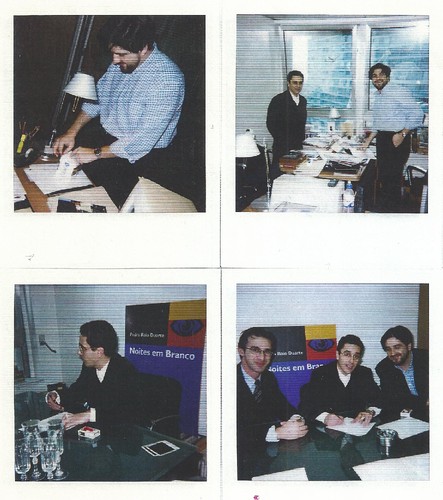 Quatro polaroids do ano da graça de 1999, mês de Novembro, que registam um momento: o da assinatura do primeiro contrato de edição da então nova editora Oficina do Livro com o primeiro autor da casa para o seu livro de estreia.