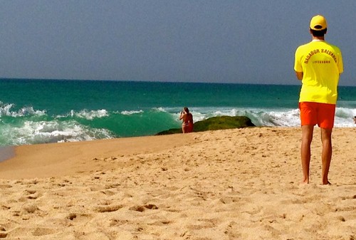 Ontem, pai-galo, fui ver o meu filho na sua nova função de nadador-salvador da Praia Grande. Acho que nem ele tem bem a noção do orgulho que é, para mim, vê-lo equipado e atento num dos lugares essenciais da minha vida. A praia que foi a casa de férias, parque infantil, centro de reconhecimento de potenciais namoradas, e jardim de efectivo namoro, desde que nasci até aos 21 anos... Vê-lo ali foi como se passasse o testemunho à pessoa que melhor podia honrar os dias (tão) felizes que vivi na Praia Grande. E teria tanto mais para dizer...