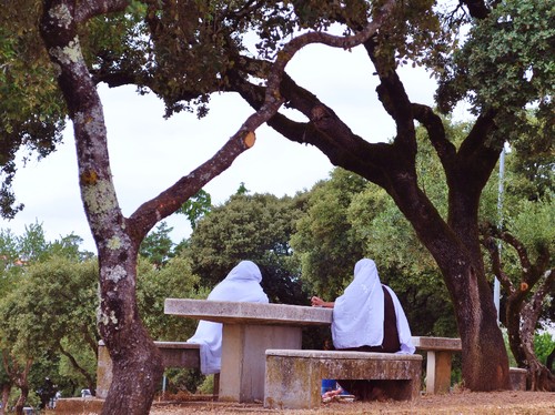 Um sábado aparentemente sem história tinha, para meu espanto, centenas, talvez mais de mil pessoas espalhadas pelo recinto gigante, carros nos 15 ou 16 parques que rodeiam o santuário, negócio aberto, camionetas, picnics, turistas, bifanas, sandálias, camisolas de alças, crianças aos berros.