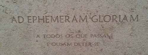 Fiquei na mesma sem saber o que é, quem fez, o que significa. Mas gostei das palavras gravadas na pedra. Há acasos felizes em momentos aparentemente sem história e sem sentido.